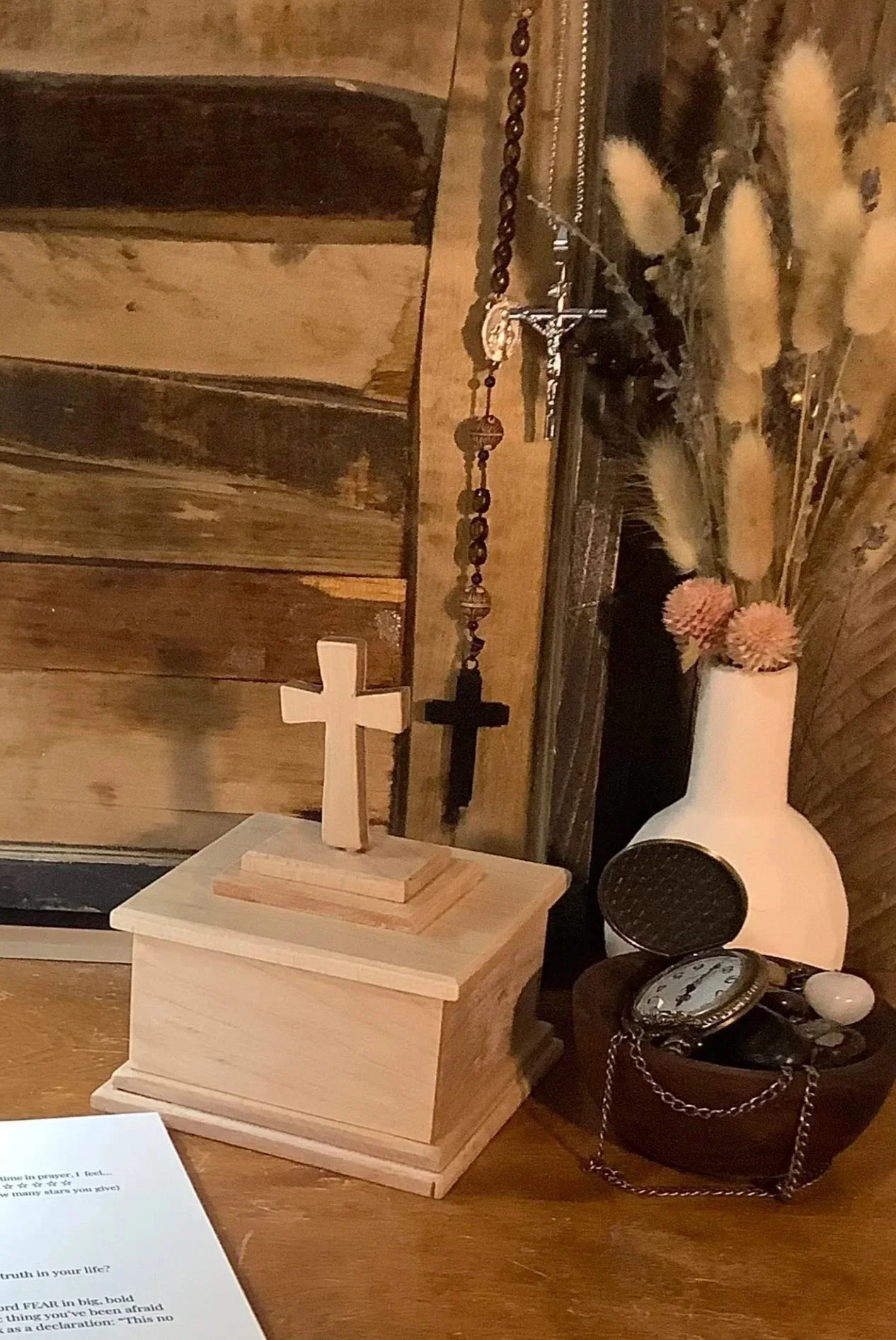 The JesusBox: A handcrafted wooden prayer box created as a sacred space for surrender.